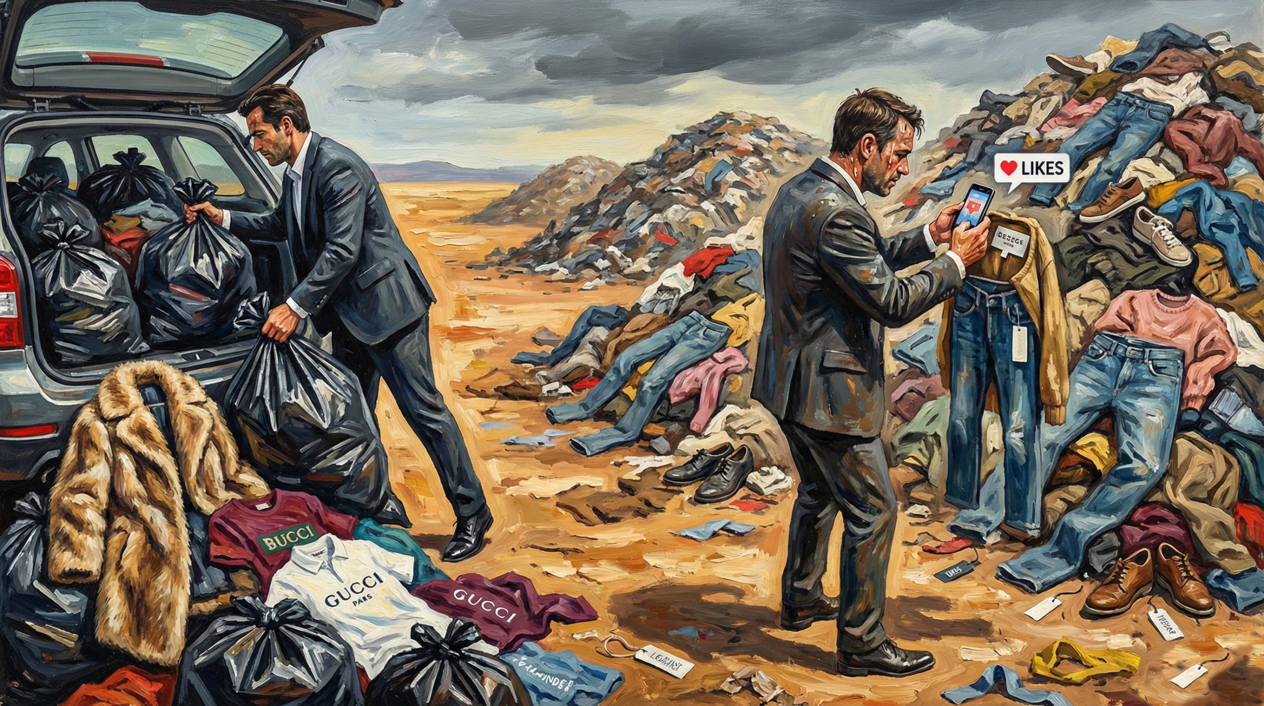 Al cabo de una hora de penoso caminar, ya casi sin agua y medio asfixiado, pero con el propósito de comprar una botella suplementaria para el camino de regreso, se sorprendió en medio de un caserío, se sentó a descansar en una piedra, se restregó los ojos y descubrió que las colinas que llamaban su atención, apenas una hora antes, eran montañas de ropa usada, que él mismo había ayudado a construir en el momento en que se decidió a llevar su ropa vieja al contenedor.